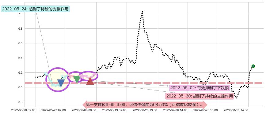 ♘ 支撑价格位6.06,可信任强度68.59%,距离最后交易2022-08-12 14:00形成的收盘价格6.29相差 -3.66%