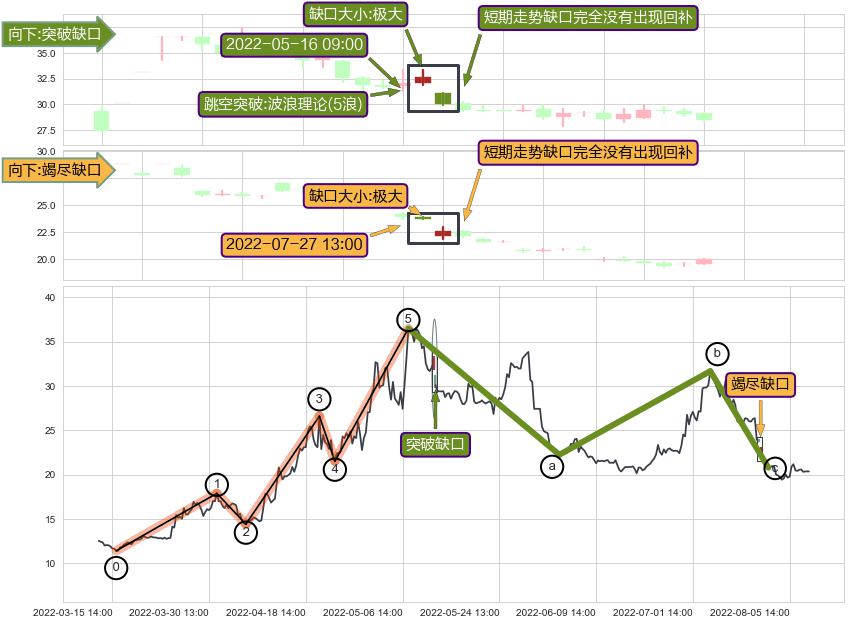 ➢ 2022-07-27 13:00形成:向下跳空【竭尽】缺口