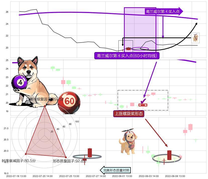 | 2 🅚:旭日东升 ➕ 🎢:葛兰威尔第④买入点买入点信号形成后,猜想后续走势持续反弹上升(均值回复) ☞ 看多信号 ⇥ 【均线】交织【🅚线】⇥ 综合量化分数: 54 | > |