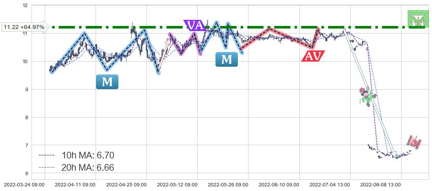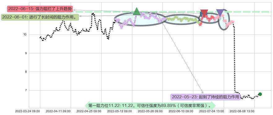 ♘ 阻力价格位11.22,可信任强度89.89%,距离最后交易2022-08-12 14:00形成的收盘价格6.80相差 +64.97%