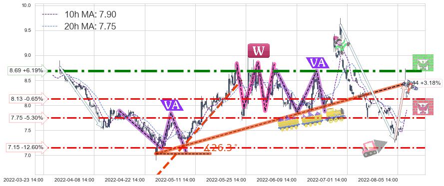 ♞ 10小时均线:7.90,20小时均线:7.75→ 快线>慢线
