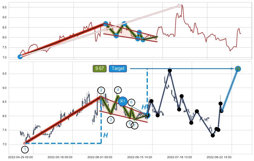 ➢ 【买1】: 激进型 买点 →(06-14:13: 8.02 )形成突破降⚑旗形【整理】形态