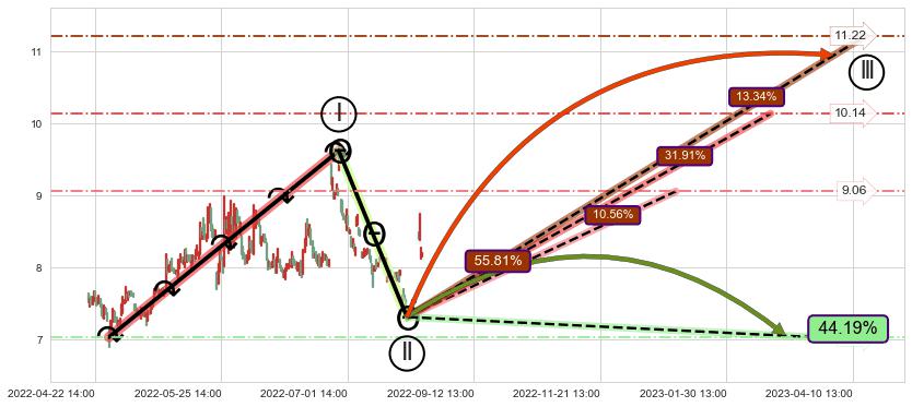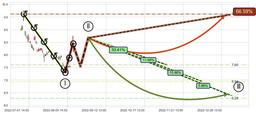 ♘ 支撑价格位7.15,可信任强度60.00%,距离最后交易2022-08-12 14:00形成的收盘价格8.18相差 -12.60%