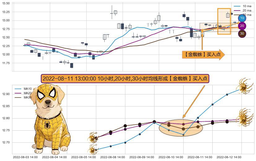 ⚀ 2022-08-11 13:00:00小时显现 10小时-20小时-30小时均线 【金蜘蛛】买入点 看多信号,后市看涨,买入
