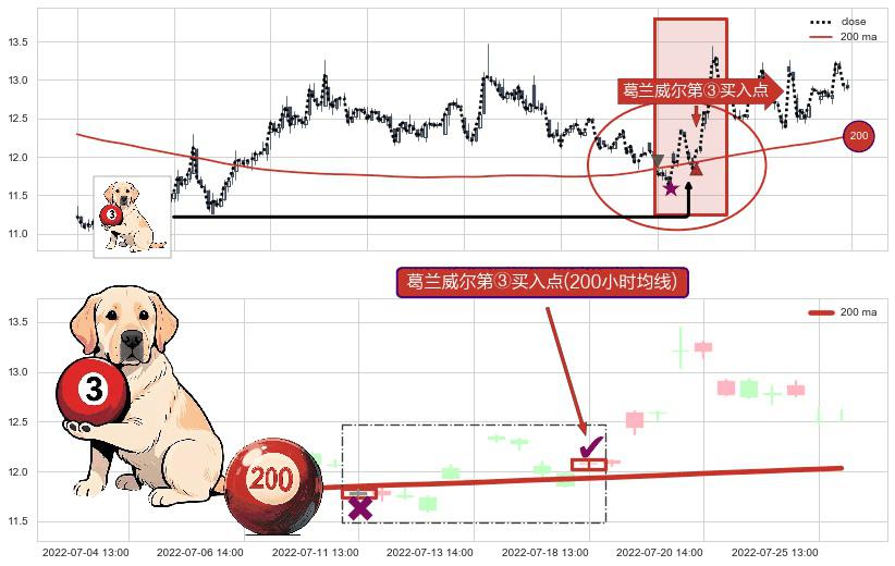 ⚀ 2022-07-18 13:00:00-小时显现 葛兰威尔均线 200小时均线 第③买入点 上升趋势的中继信号,后市看涨,买进信号