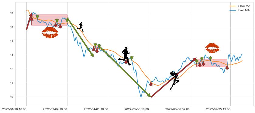 02-08 14:00至03-04 10:00 慢线与快线多次接触,存在上下穿越,有缠绕