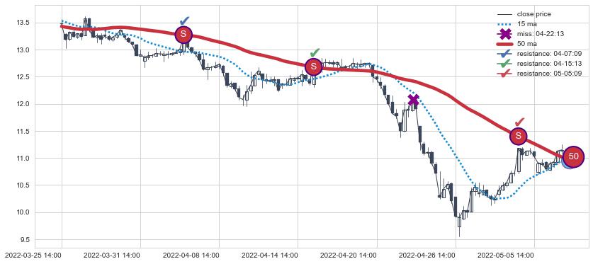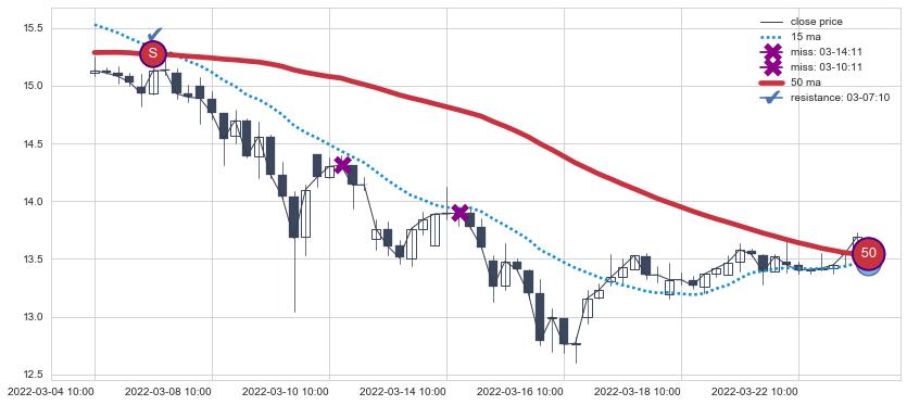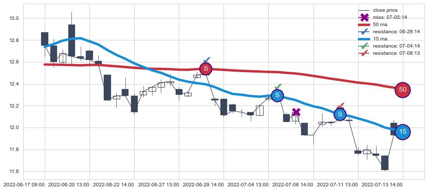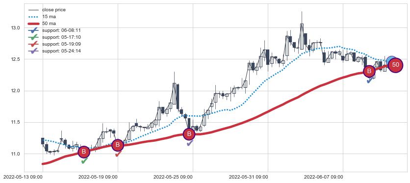 ⚂ 2022-06-14 14:00:00小时突然冒出一根大阳线,一下子顶穿三条均线且收盘价收在各条均线之上