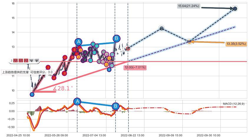 ➣ 预测:2022-09-14 15:00,【试探支撑】稳定目前上涨趋势的前提下,预测价格:13.35