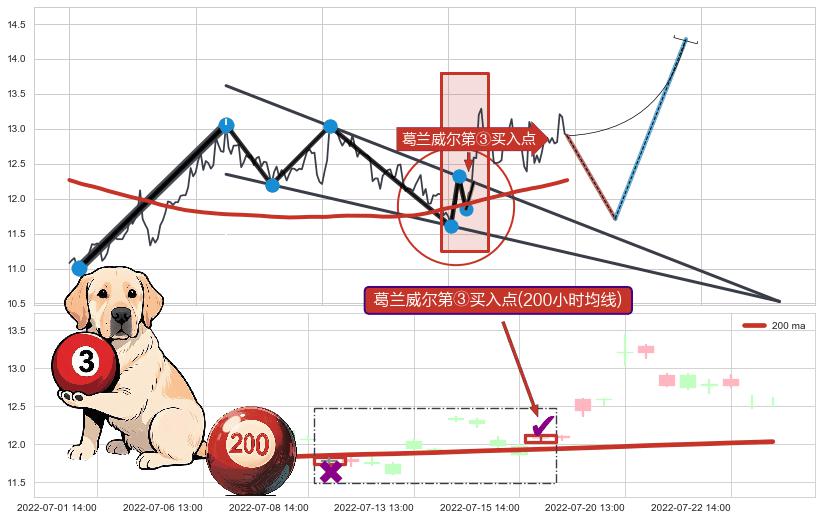 ♘ 在最后的上升阶段2022-04-27 09:00至2022-07-22 14:00存在 持续未破位的支撑位 ,支撑价格12.00,支撑可信任强度75.68%,其距离最后价格12.90相差 -7.01%