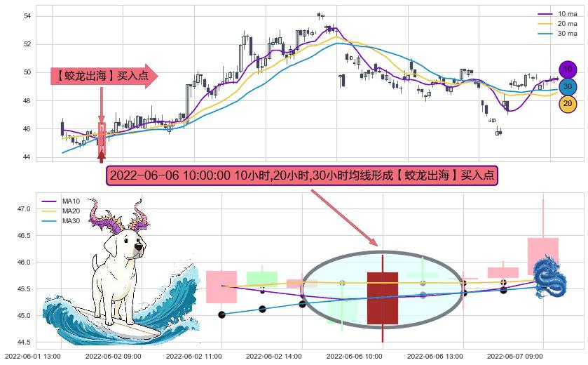 ⚀ 2022-06-06 10:00:00小时显现 10小时-20小时-30小时均线 【蛟龙出海】买入点 看多信号,后市看涨,买入