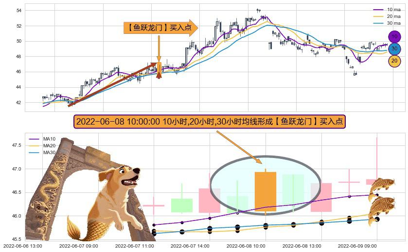 ⚀ 2022-06-08 10:00:00小时显现 10小时-20小时-30小时均线 【鱼跃龙门】买入点 看多信号,后市看涨,买入