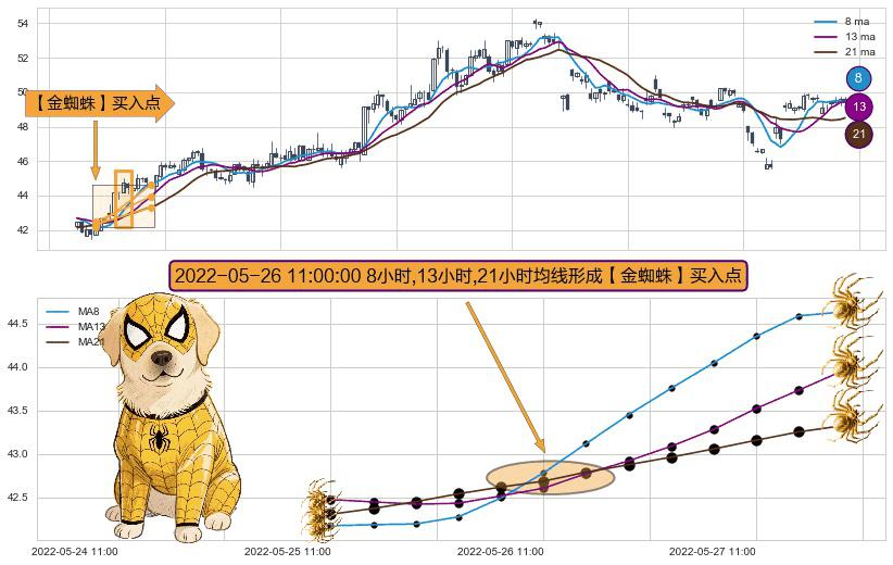 ⚀ 2022-05-26 11:00:00小时显现 8小时-13小时-21小时均线 【金蜘蛛】买入点 看多信号,后市看涨,买入