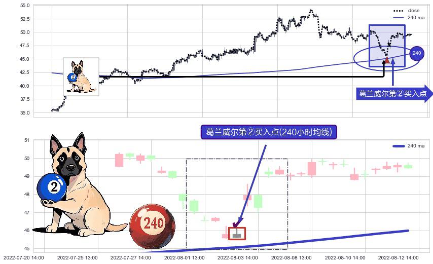 ⚀ 2022-08-02 14:00:00-小时显现 葛兰威尔均线 240小时均线 第②买入点 上升趋势的中继信号,后市看涨,买进信号