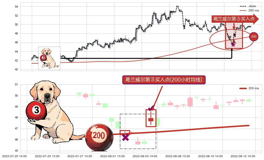 ⚀ 2022-08-03 13:00:00-小时显现 葛兰威尔均线 200小时均线 第③买入点 上升趋势的中继信号,后市看涨,买进信号