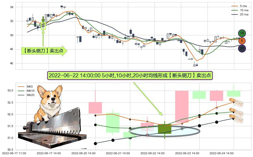 ⚀ 2022-06-22 14:00:00小时显现 5小时-10小时-20小时均线 【断头铡刀】卖出点 看空信号,后市看跌,卖出