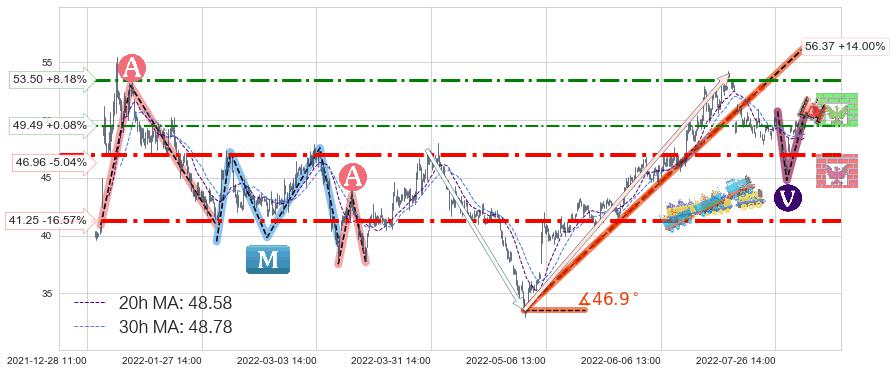♘ 支撑价格位46.96,可信任强度83.77%,距离最后交易2022-08-12 14:00形成的收盘价格49.45相差 -5.04%