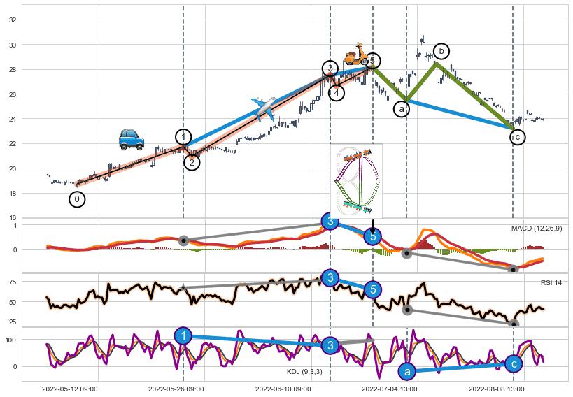 ➢ 1,3,5驱动浪MACD, RSI, KDJ走势都出现【常规背离】反转信号增强