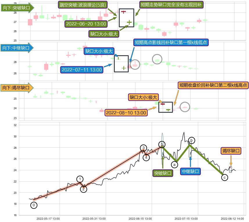 ➢ 2022-08-10 13:00形成:向下跳空【竭尽】缺口