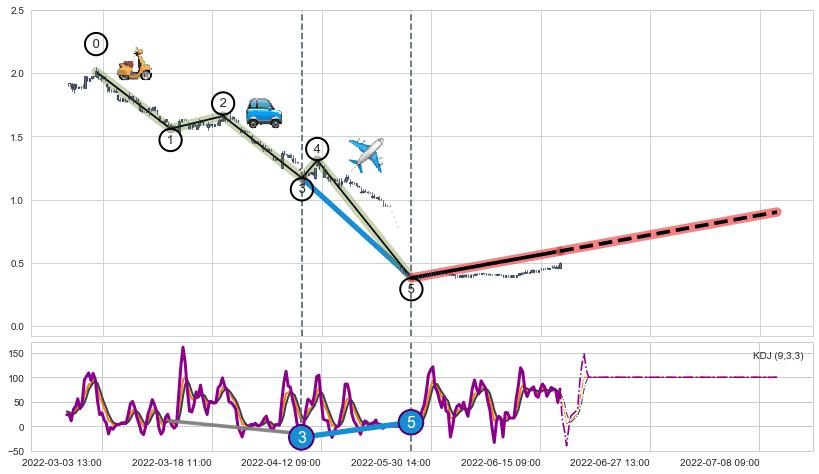 ➣ 【KDJ】缠论走势出现【常规背离 & 反转信号】背离程度40.22%,背离夹角角度45.1˚,背离程度中等