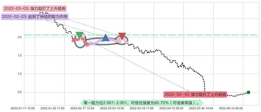 ♘ 阻力价格位2.061,可信任强度80.70%,距离最后交易2022-06-16 14:00形成的收盘价格0.5000相差 +312.21%