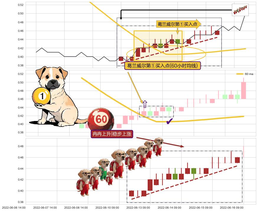 从2022-03-03 09:00至2022-06-16 14:00,共包含213个小时,阶段股价下跌-120.56%,阶段股价变动位移路程比: 1 : 3