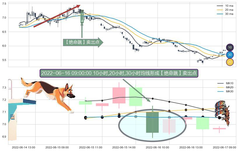 ⚀ 2022-06-16 09:00:00小时显现 10小时-20小时-30小时均线 【绝命跳】卖出点 看空信号,后市看跌,卖出