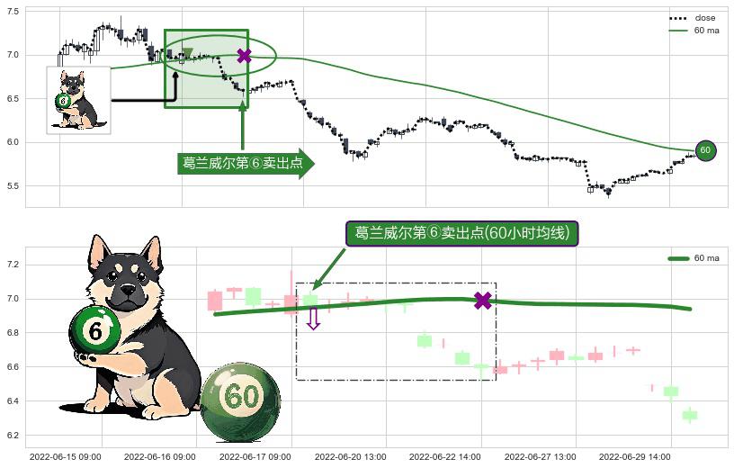 ⚀ 2022-06-17 10:00:00-小时显现 葛兰威尔均线 60小时均线 第⑥卖出点 走势反转见顶信号,后市看跌,卖出信号