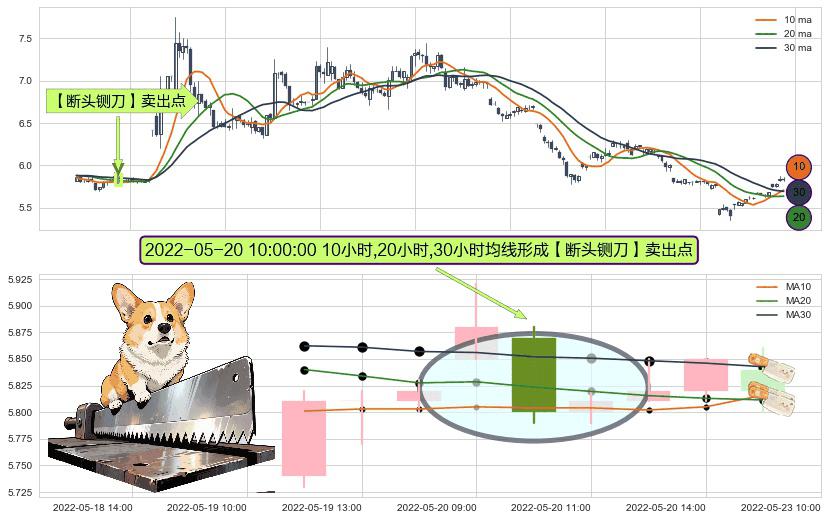 ⚀ 2022-05-20 10:00:00小时显现 10小时-20小时-30小时均线 【断头铡刀】卖出点 看空信号,后市看跌,卖出