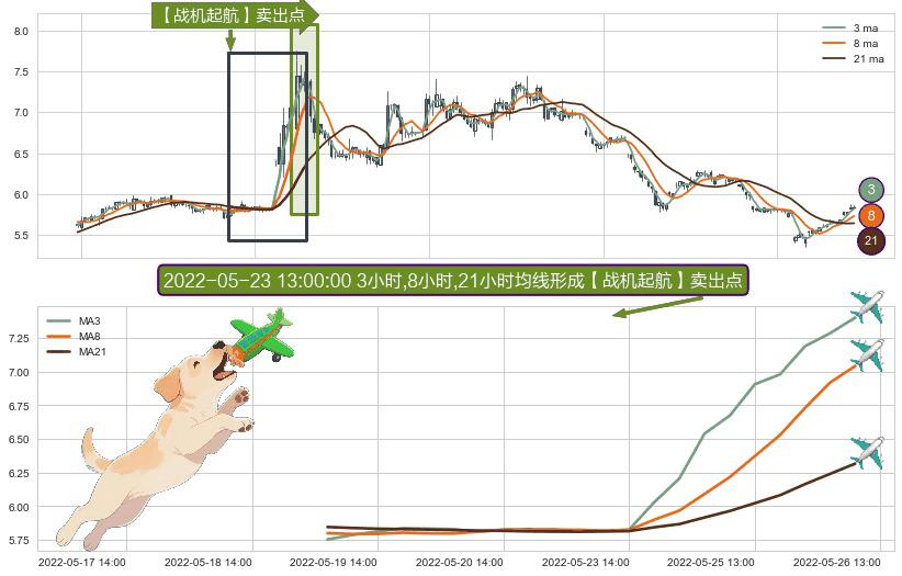 ⚀ 2022-05-19 11:00:00小时-2022-05-26 11:00:00小时显现 3小时-8小时-21小时均线 【战机起航】卖出点 看空信号,后市看跌,卖出