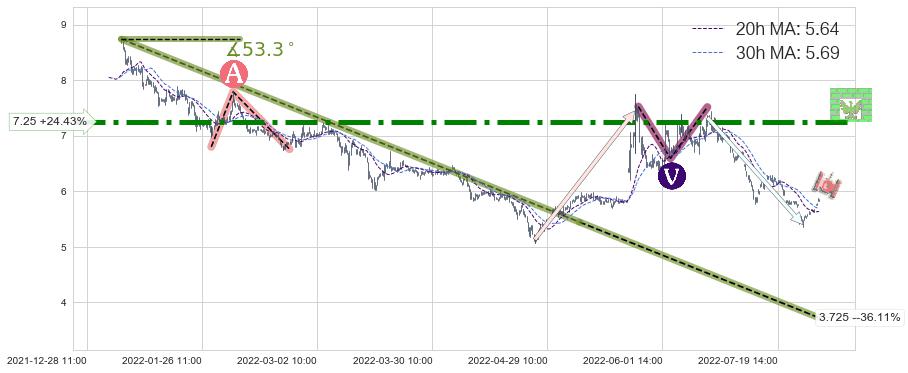 2022-06-07: 第一阻力位7.25强力阻拦了上升趋势,成功阻止了价格的继续上涨。