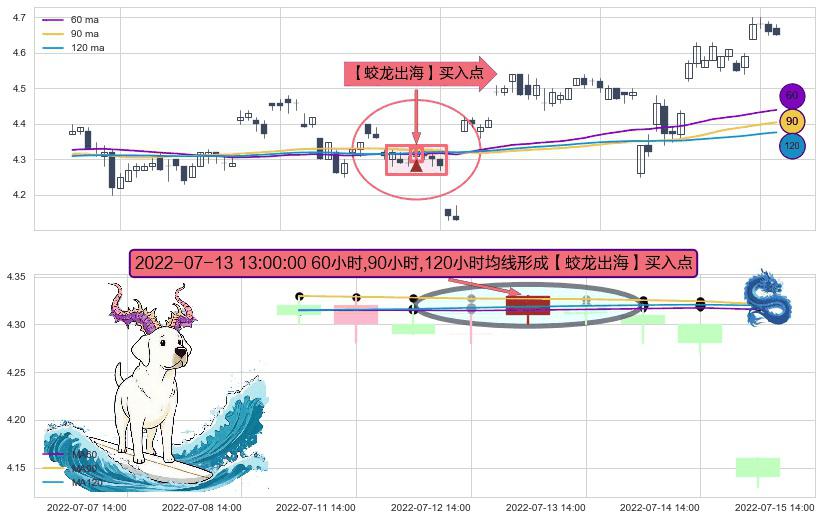 ⚀ 2022-07-13 13:00:00小时显现 60小时-90小时-120小时均线 【蛟龙出海】买入点 看多信号,后市看涨,买入