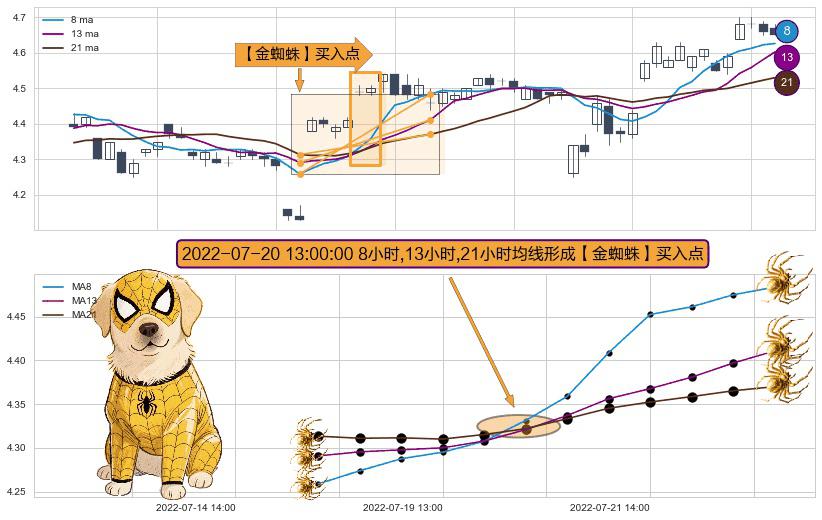 ⚀ 2022-07-20 13:00:00小时显现 8小时-13小时-21小时均线 【金蜘蛛】买入点 看多信号,后市看涨,买入
