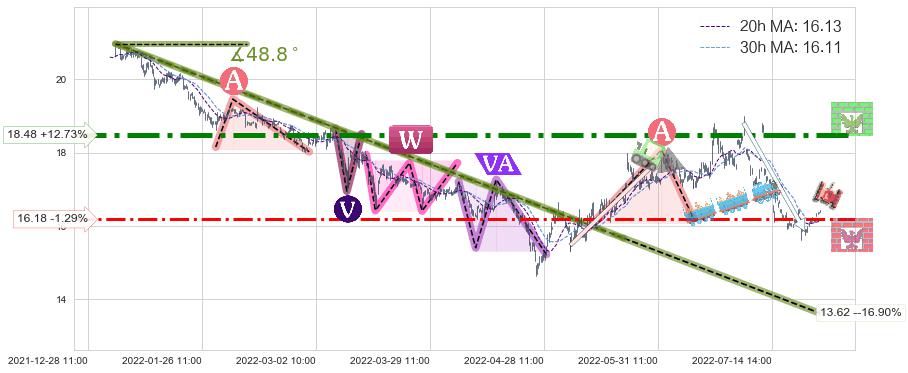 ♘ 支撑价格位16.18,可信任强度57.64%,距离最后交易2022-08-12 14:00形成的收盘价格16.39相差 -1.29%