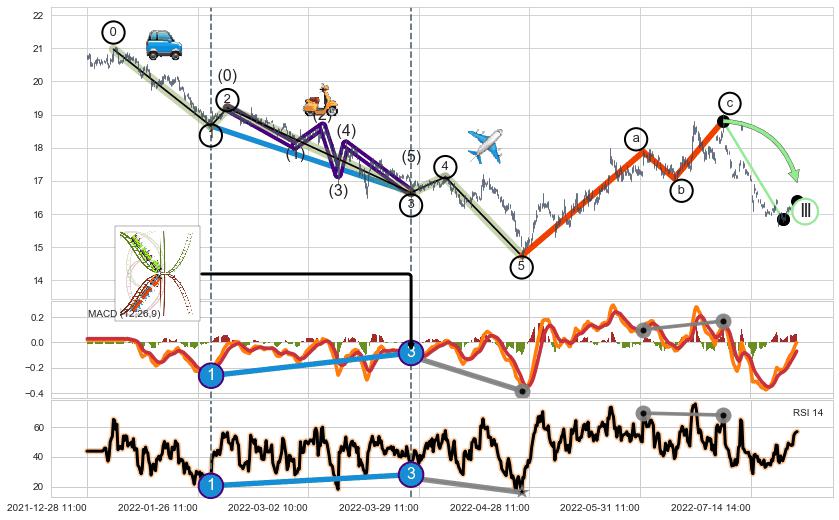 ➢ a,c调整浪MACD, RSI, KDJ走势都【未出现】背离,abc走势延续, 5浪反转概率增强