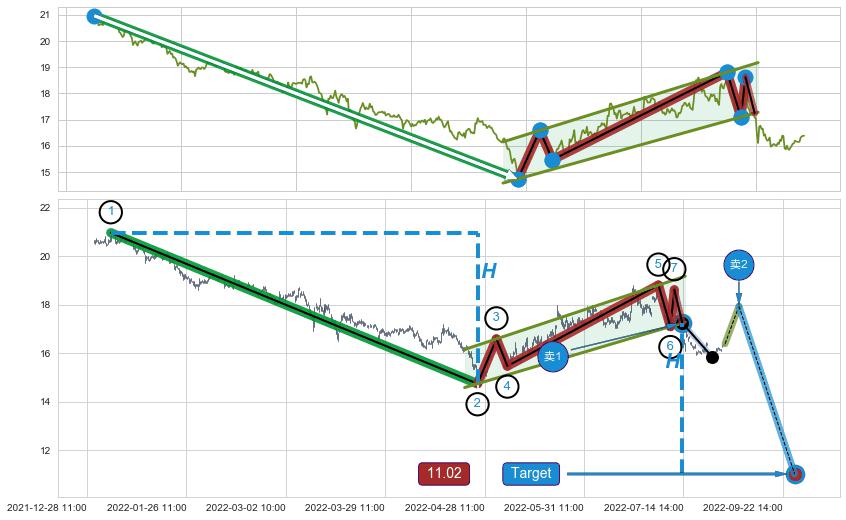 ➣ AI预测: 假定反转启动后, 第❸目标位置(08-23:13, 14.74)