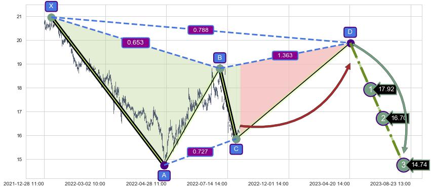 ➣ D点拟合预测价格19.88,距离最后交易收盘价格16.39相差 +21.31%