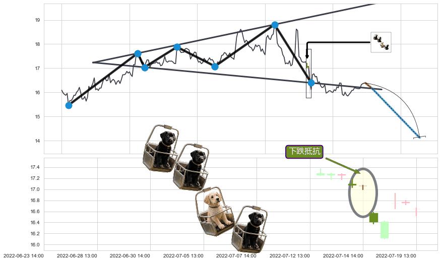 ➣ 【多空实力根本性转变→大方向抉择→空方占优】已在07-15:14突破【支撑】颈线 16.39