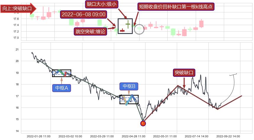 从2022-04-07 10:00至2022-05-10 09:00,共包含100个小时,阶段股价下跌-9.74%,阶段股价变动位移路程比: 1 : 6