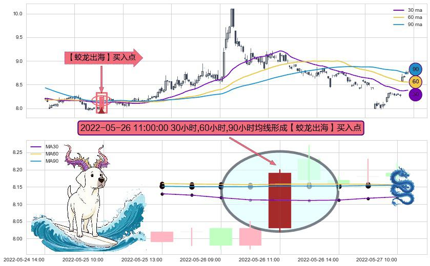 形态多维评估: ⚀ 2022-05-26 11:00:00小时显现 30小时-60小时-90小时均线 【蛟龙出海】买入点 看多信号,后市看涨,买入