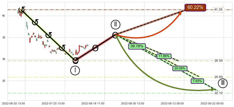 ➢ 循环浪继续向下【最低】位置(09-22:09, 22.12),匹配聚类样本比例19.69%, 可能性概率7.83%