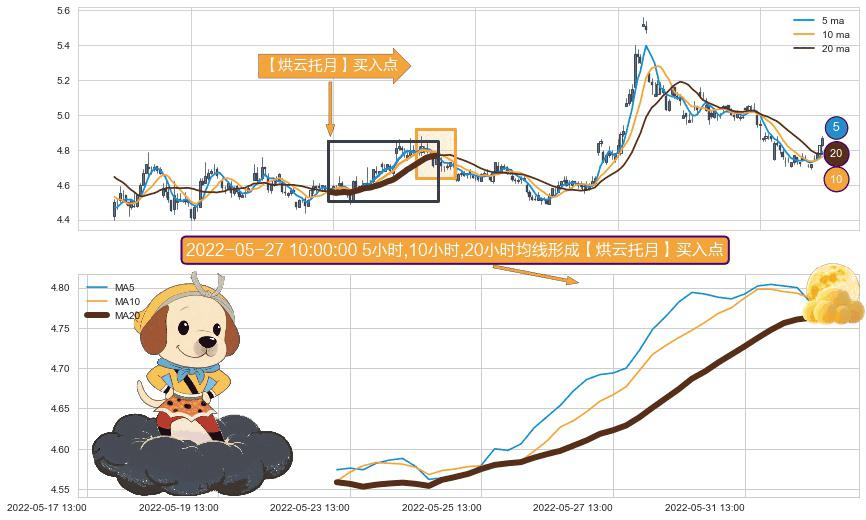 ⚀ 2022-05-23 11:00:00小时-2022-06-01 14:00:00小时显现 5小时-10小时-20小时均线 【烘云托月】买入点 看多信号,后市看涨,买入