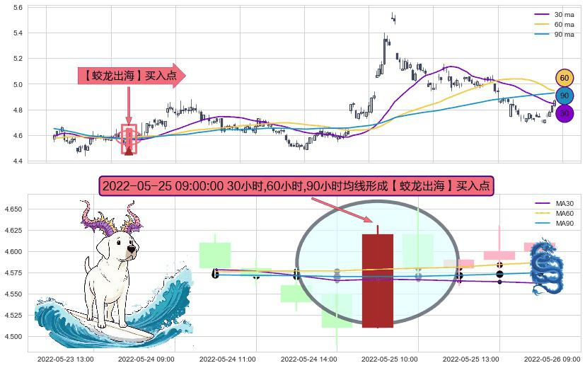 ⚀ 2022-05-25 09:00:00小时显现 30小时-60小时-90小时均线 【蛟龙出海】买入点 看多信号,后市看涨,买入