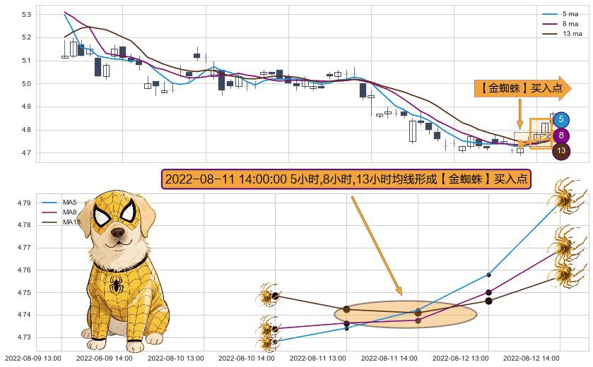 ⚀ 2022-08-11 14:00:00小时显现 5小时-8小时-13小时均线 【金蜘蛛】买入点 看多信号,后市看涨,买入