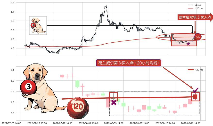 ⚀ 2022-08-12 14:00:00-小时显现 葛兰威尔均线 120小时均线 第③买入点 上升趋势的中继信号,后市看涨,买进信号
