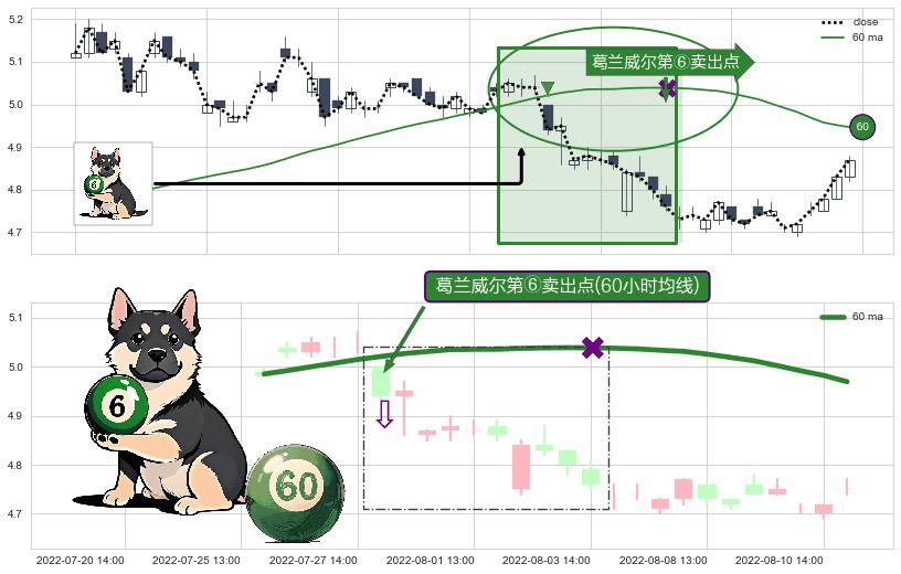 ⚀ 2022-07-28 13:00:00-小时显现 葛兰威尔均线 60小时均线 第⑥卖出点 走势反转见顶信号,后市看跌,卖出信号