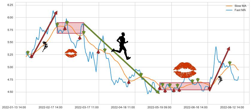 05-11 09:00至06-17 14:00 慢线与快线多次接触,存在上下穿越,有缠绕