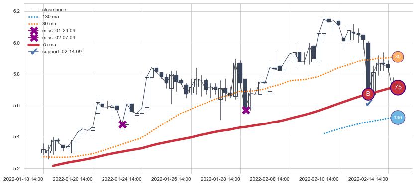 ⚂ 2022-08-02 14:00:00-小时均线向下破位,2022-08-12 14:00:00-小时重新上穿突破均线,均线支撑再次生效