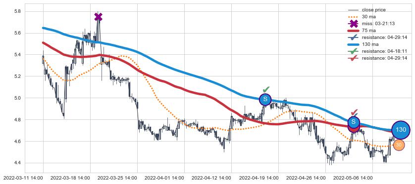 ⚂ 2022-07-07 14:00:00小时突然冒出一根大阴线,一下子下穿三条均线且收盘价收在各条均线之下