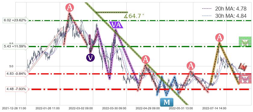 ♞ 20小时均线:4.78,30小时均线:4.84→ 快线<慢线