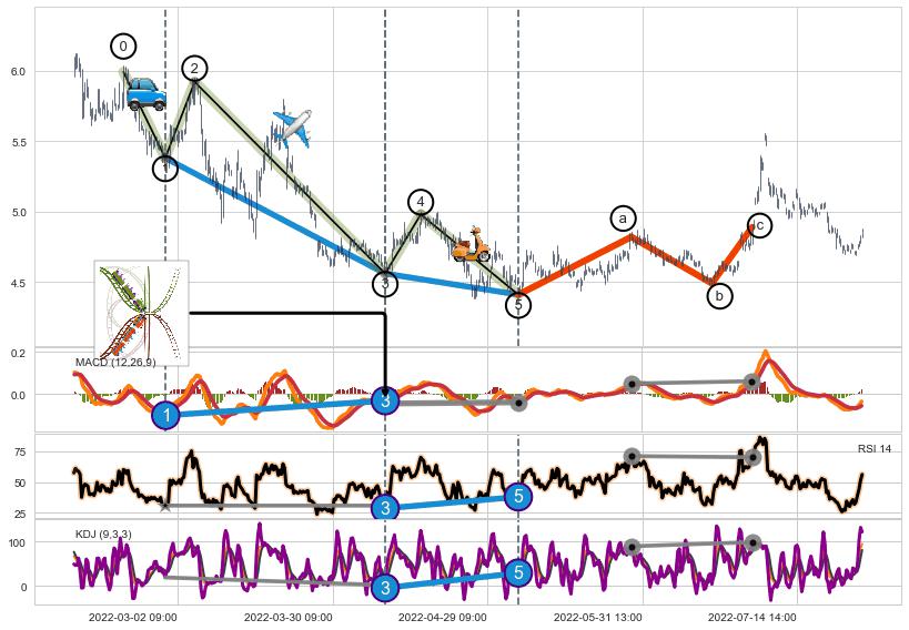 ➢ a,c调整浪MACD, RSI, KDJ走势都【未出现】背离,abc走势延续, 5浪反转概率增强